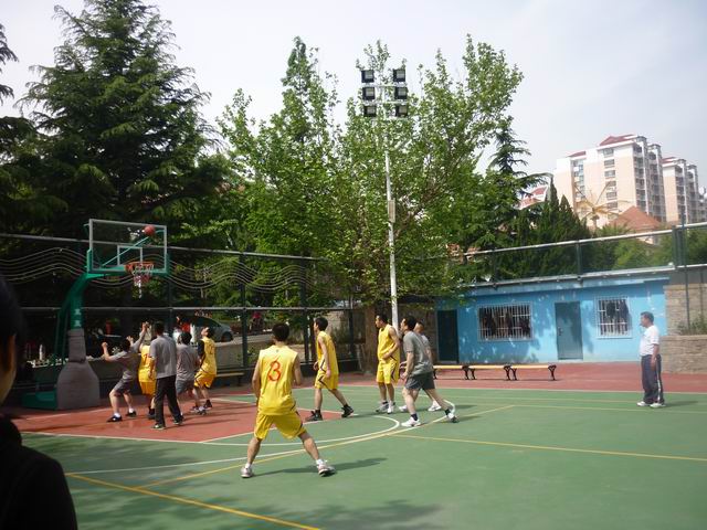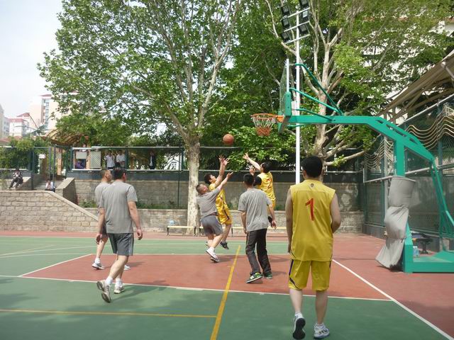 赛场上,身穿黄色运动衫的我公司员工,浴着阳光的颜色,踏着青春的脚步,在篮场上英姿焕发,充分展示了我公司的精神面貌。